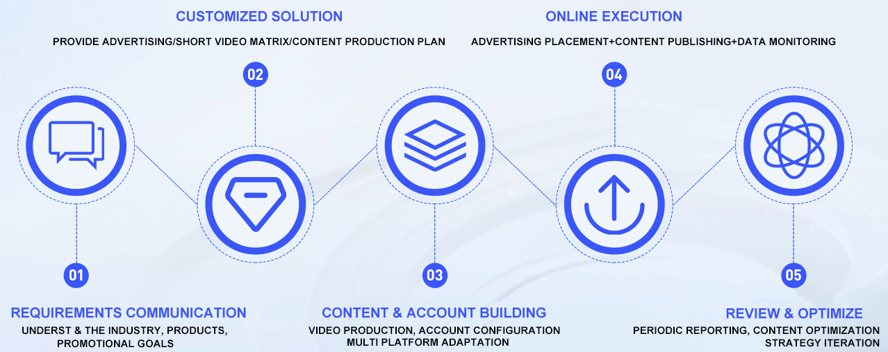 We provide a one-stop solution for brands and enterprises, including social media advertising placement, short video matrix operation, content production, and brand exposure promotion.